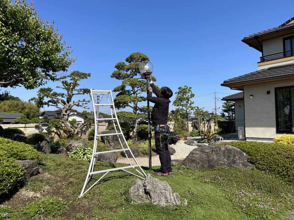もちろんです!KamoshidaGardenでは、お庭のあらゆる「困った」に対応しています。 外灯の撤去や設置には「電気工事士」という国家資格が必要ですが、弊社では信頼できる提携の電気工事職人とチームを組んで作業を行います。