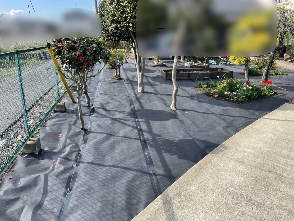 植木や花壇を残したままの防草シート施工|水戸市での雑草対策事例